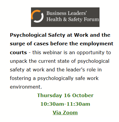 This forum is for our member companies on the 2nd December and 7.30am – if you have not received you invite please contact besafe@besafe.org.nz